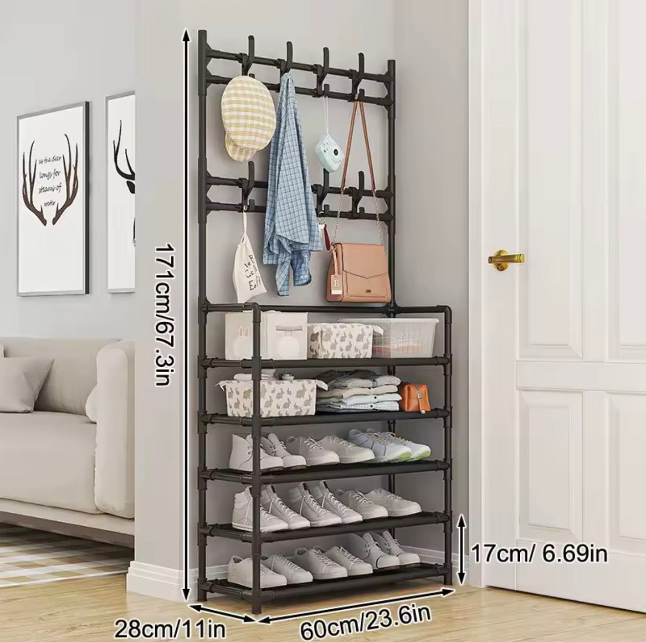 הקומפלקס המשפחתי- מתלה בגדים ועמדת 5 קומות להנעלה.